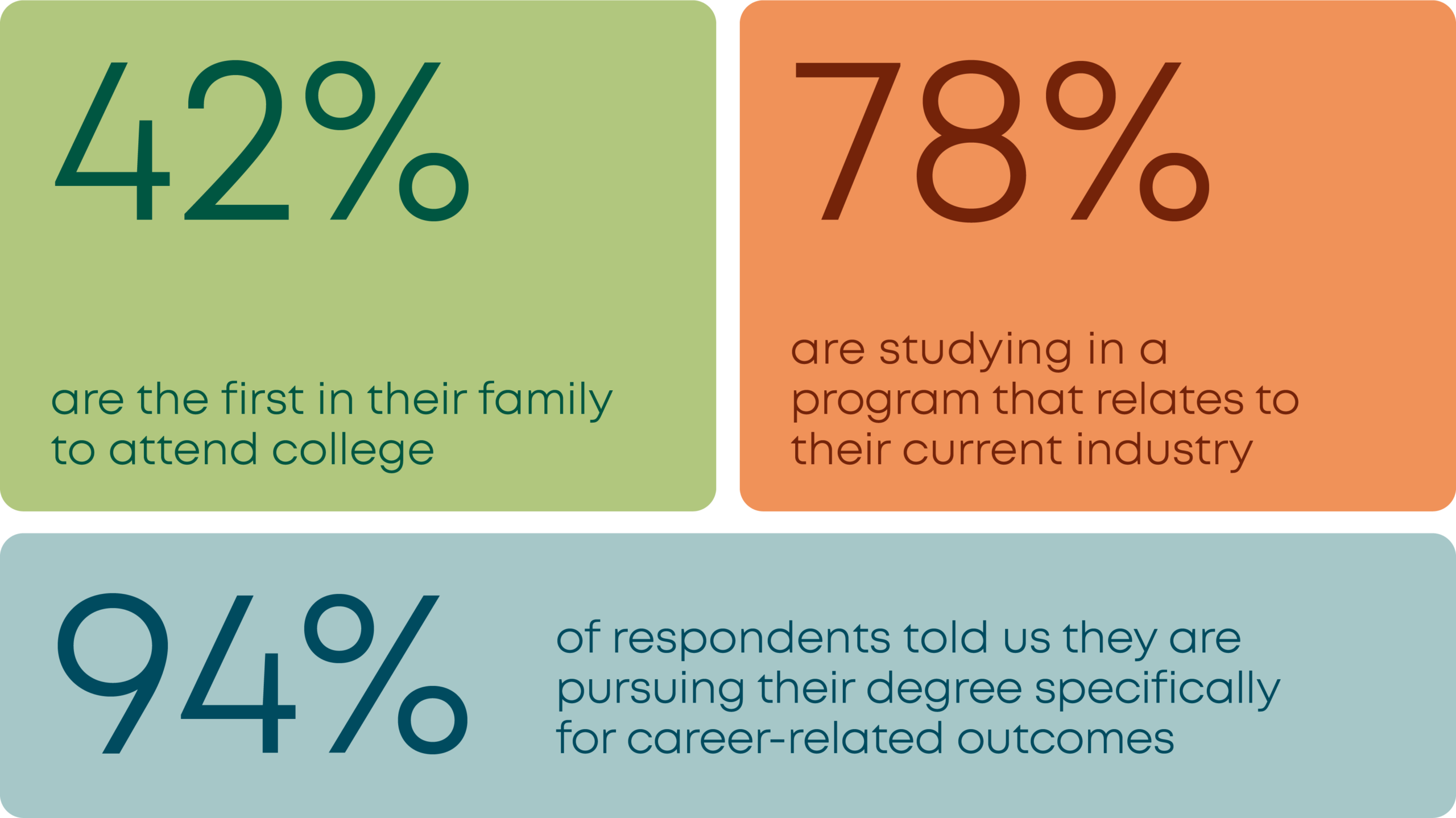 Online learners are determined to achieve personal and career mobility. They recognize that higher education can be the driver to advance their careers.